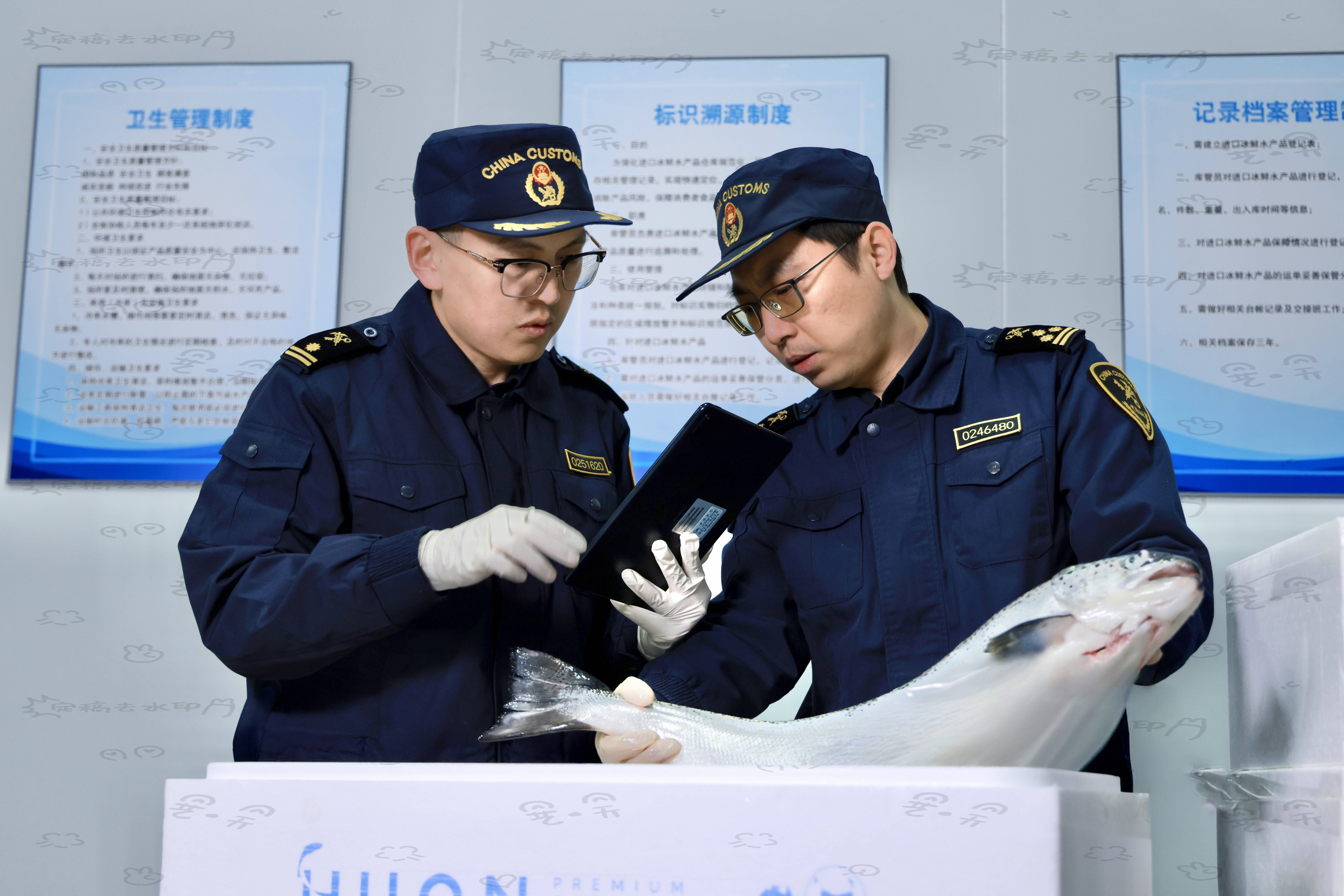 冰鲜三文鱼对运输、储存和通关时效要求极高。为保障生鲜产品能够高效通关,天津滨海机场海关设立专用窗口与绿色通道,对进口冰鲜水产品实行“即到即报、即查即放”模式,优先接单、优先查验,进一步提高货物通关效率。同时,为了更好地守护“舌尖上的安全”,机场海关按照我国进口食品相关法律法规和部门规章的规定,严格单证审核和现场查验,确保符合准入及查验要求,切实保障安全进口。